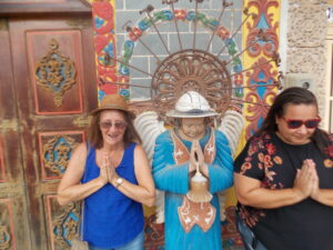 Anjo vaqueiro recepciona turistas na entrada do Palácio