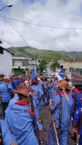 O folclorista Edvandro Serafim, assim descreve a magia dos bacamateiros: “ armas brilhantes e reluzentes, ricamente enfeitadas, fardados, geralmente de azul, a cor dos combates, e também homenagem a nossa senhora, organizados, com seus chapéus de couro com a aba virada ricamente enfeitados, ou Chapéus de palha com a aba virada e uma rosa enfeitando adentram na praça da cidade, dançando e fazendo coreografias cantando, acompanhados de sanfona triângulo e zabumba”.