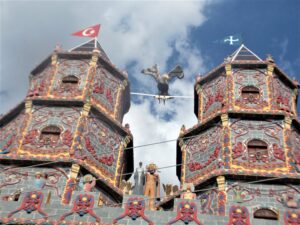 O palácio armorial tem mais de 15 metros de altura. Ele é reaberto ao público sempre na última semana de maio, período em que a cidade organiza sua cavalhada, também, inspirada por Ariano.