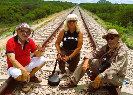 Foto de capa: Historiador José Tavares(E), Rosélia Belo(C) e João Costa na Transnordestina Área da Serra Grande