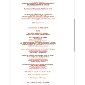 Os organizadores do evento Cariri Cangaço Catolé do Rocha- 2024, divulgou na quarta-feira(13) a vasta programação do encontro que ocorrerá entre os dias 23 a 25 de fevereiro, que inclui palestras ministradas por pesquisadores e historiadores, lançamentos de livros e visitas técnicas a lugares de memória do cangaço nos municípios de Catolé e Jericó.