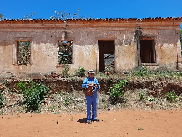 PAISAGENS E RUÍNAS. DONA XANDU (IDOSA) PASSEIA POR LOCAIS HISTÓRICOS E NARRA OS ACONTECIMENTOS DE SEU SEQUESTRO POR QUELÉ.