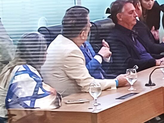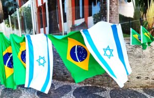 Bandeiras do estado siionista ao lado da bandeira do Brasil