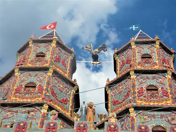 No topo das torres, referências ao islamismo e às cruzadas, presentes da cultura ibérica