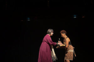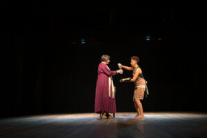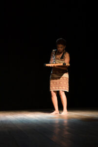 Logo a seguir, o exercício dramático mostrou cenas de textos de autoria e direção de João Costa: “Núbia” uma performance sobre o 1º Leilão de homens e mulheres capturadas na África.