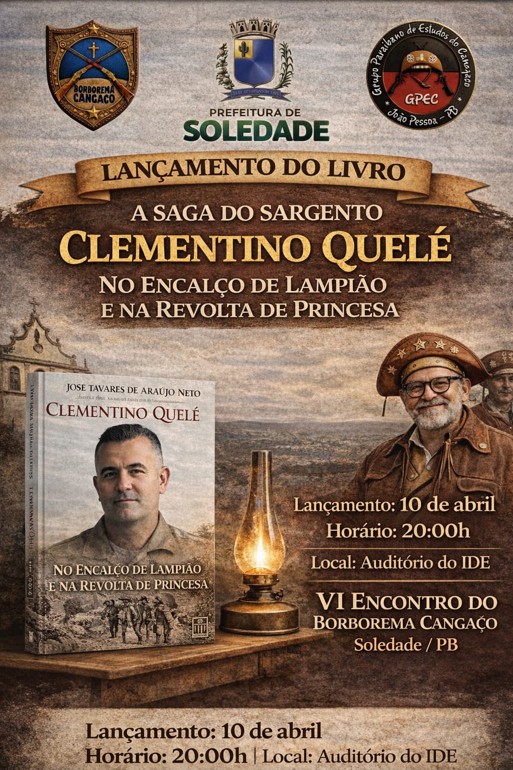 O escritor e pesquisador do Cangaço, José Tavares de Araújo Neto, lança nesta sexta-feira, 8, em Soledade, durante evento do Borborema Cangaço, seu mais recente Livro: “NO Encalço de Clementino Quelé; abordagem completa sobre a trajetória do icônico sargento da Polícia Militar da Paraíba.