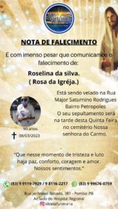 Pombal chora a morte de Dona Roselina, a Rainha perpetua da Irmandade dos Negros do Rosário de Pombal.